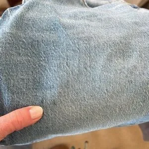 In GREAT previously loved condition. I took a pictures to show the only thing that looked like possible mark but I think it is part of the wash.