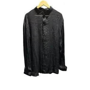 Mandarin Collar Sheer Button Down Long Sleeve Shirt Black