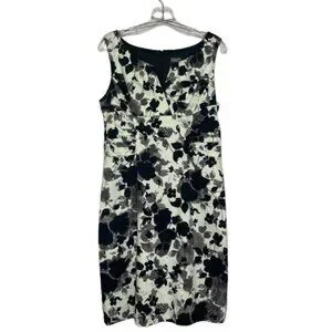 Adrianna Papell Petite black white gray floral sleeveless dress size 12P