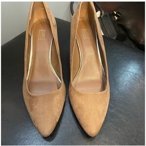Simply Styled ladies tan faux suede wedge shoes, Agatha size 10M