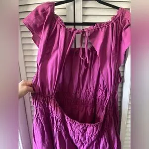 The model pics are of the white version but mine is a magenta color. I never got the chance to wear it & it does need a good steam to get the wrinkles out but it’s such a cute dress. Perfect for a Summer occasion.