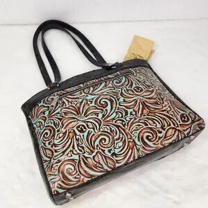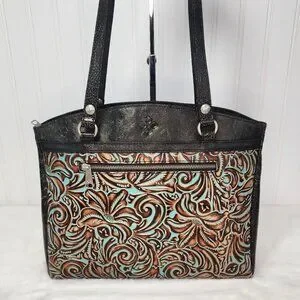 NWT Patricia Nash Leather Poppy Tote Satchel - The Tooled Turquoise Collection