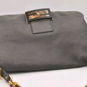 Fendi Mama baguette. Grey nubuck with slight metallic and lucite hardware.