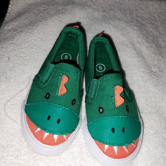 Cat & Jack Toddler Boys Green Dinosaur Finch Canvas Slip-On Shoes Sneakers size 5