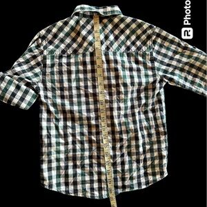 Handsome babe and hunter green plaid button up shirt. Excellent condition.