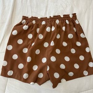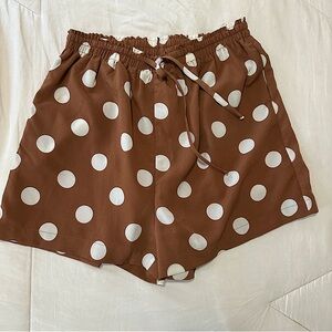 4SI3NNA Polka dot shorts, stretchy waist with drawstring (does tighten and tie), pockets!!, decent length (I wear them high waisted and they juuuust hit mid thigh), great used condition with no major signs of wear. Super classy polka dot shorts, SO versatile! Old money aesthetic, vacation look, classic style.