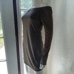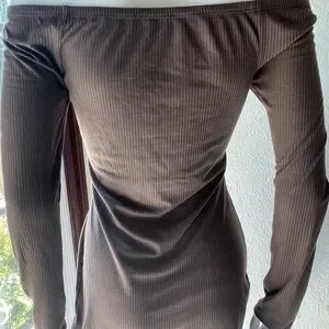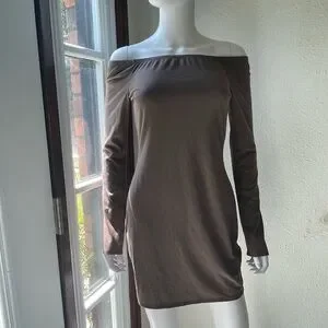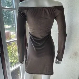 Long sleeve ribbed dress with an off the shoulder neckline. Excellent used Condition Size M Taupe