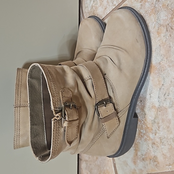 MIA Leather Ankle Boots Caramel Color Womens Size 9 Side Buckles Pull On