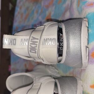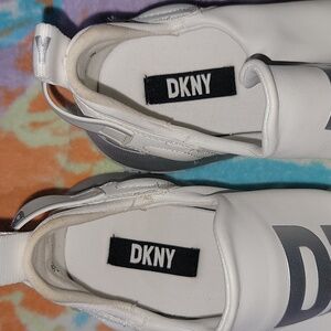 DKNY Women's Size 8.5 Kari-slip on white & silver sneakers