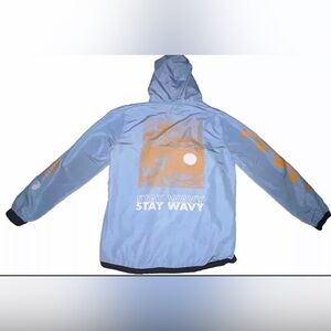 Light Blue Windbreaker Jacket Mens Large Stay Wavy Logo Brooklyn Cloth Co