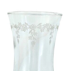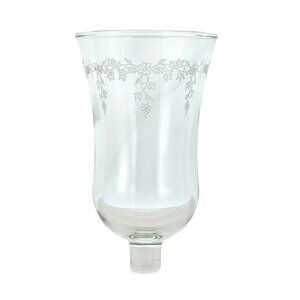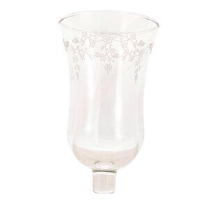 This Homco Cathedral Floral Sconce Votive Candle Holder radiates charm with its 6" etched garland design. Clear glass material enhances the cottagecore aesthetic, perfect for adding a touch of vintage elegance.