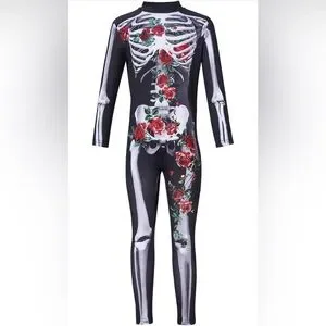 NWOT Boys Girls Halloween Cosplay Jumpsuit Bodysuit 3D Graphic Skull Skeleton Bone Catsuit for Kids 9 - 12 Years