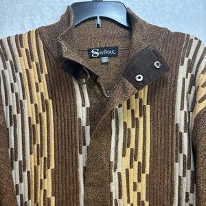 Title: Vintage Men SILVERSILK Fancy Thick Sweater Jacket Zipper Pockets Mock Neck