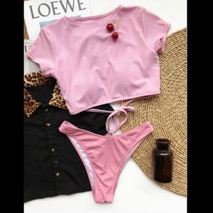 Ribbed t shirt tie back bikini set