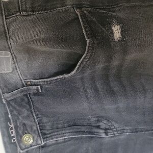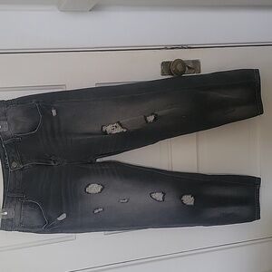 these are a black faded almost dark grey color relaxed fit jeans I love these but just don't wear mid rise jeans anymore :) great condition!! juniors 30