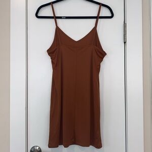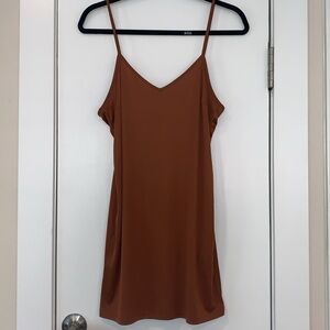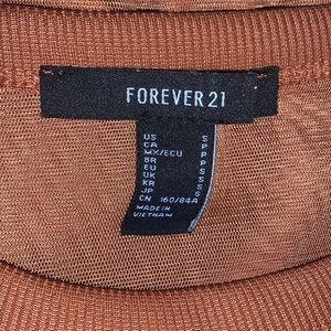Forever 21 Layered Mesh Shirt Dress in Burnt Sienna. Short sleeve mesh crewneck shirt over a solid slip. 100% Polyester. Size S, 21” at armpit, 33” approx length. In great condition…the slip is no longer attached to the shirt (my daughter’s preference) but the interior strings are still there if you prefer to reattach it.
