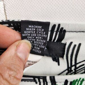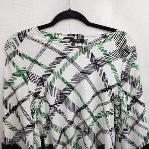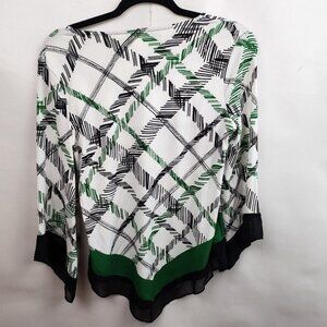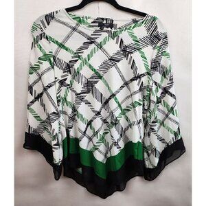 Alfani Womens Blouse Size PM White Black Angled Hem Stretch Knit Flared Sleeve