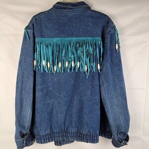 Vtg Electric Cowgirl Collection Women's Denim Jacket With Fringe & Beads Sz L