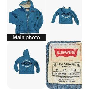 Levi's Boys Blue Zip Up Lined Hoodie S Turquoise Blue Youth Sweatshirt