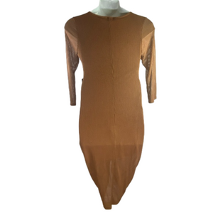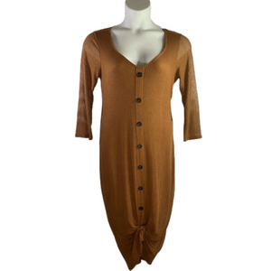 Express Faux Brown Button Down Ribbed Knit Midi Cardigan Dress SKU0199