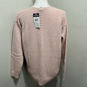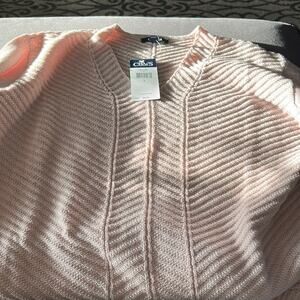 Chaps Pink V Neck Knitted Sweater with Silver Shimmers Size Large NWT