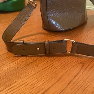 Zara croc embossed brown leather bucket bag with suede. adjustable removable strap can be work as purse with handles or crossbody bag. This is the perfect staple heading into fall fashion.