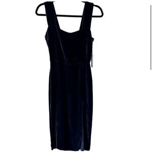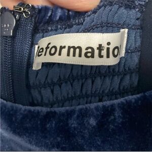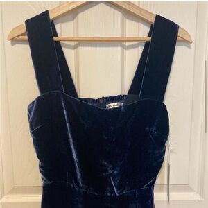 NWT Reformation navy velvet dress. Square neck, midi dress with side slit. In great condition with a small hole at the bottom of the zipper as shown in pictures.