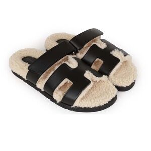 HERMES BLACK SHEARLING CHYPRE WOMENS SANDALS 36. in box. Sold out in stores. Worn once. The size is too big for me. Looking for smaller size.
