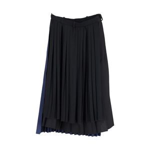 Balenciaga Pleated Midi Skirt in Navy Blue Polyester