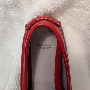 Johnston and Murphy red leather driving moccasin/slip-on shoe. Soft supple leather.