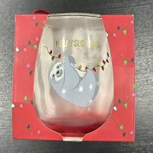 Merry Slothmas Sloth Christmas Stemless Wine Glass