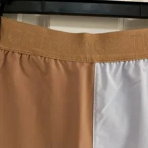 Great running/athletic/athleisure shorts by The North Face! In a modern colorblock style in light gray and brown, these lightweight, standard-fit shorts have an elasticized logo-banded waist for a comfortable fit. Attached brief provides light support and coverage. Zip pocket on the right hip securely stores essentials. FlashDry technology wicks away moisture keeping you cool and dry. Size Large (waist: 15.75” inseam: 3”) available. New with tags!