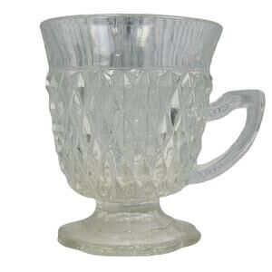 3 Vintage Cut Clear Diamond Pattern Glass Mug Plate Ashtray Mismatched Set
