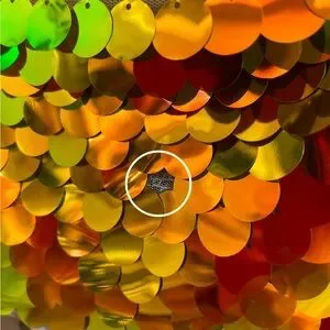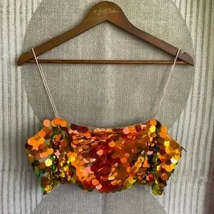 New/never worn. However, this top has a couple of sequins missing but not really noticeable since the top is very sparkly and busy