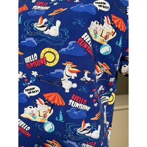 Disney Olaf Beach Hello Sunshine Scrub Top Womens XL Blue With 2 Front Pockets