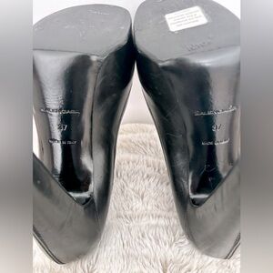 BALENCIAGA DESIGNER BLACK LEATHER PUMPS HAND MADE ITALY ALMOND TOE BUCKLE SZ 7