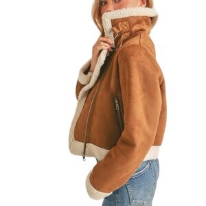 NEW FAUX SHERPA SUEDE BIKER JACKET - CAMEL