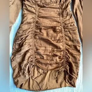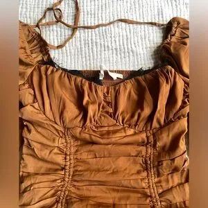 **Title:** ASTR The Label Brown Ruched Peasant Dress - Size S