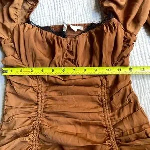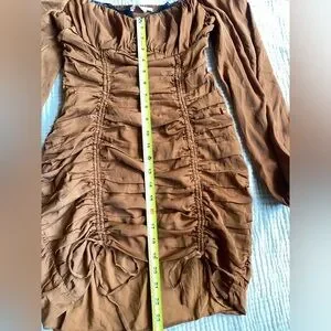 Elevate your wardrobe with this stunning ASTR The Label brown dress in size S. Designed with a body-shaping silhouette, this dress features elegant ruching that flatters your figure, while the peasant-style top adds a touch of timeless charm. Perfect for any occasion, this dress effortlessly transitions from day to night.