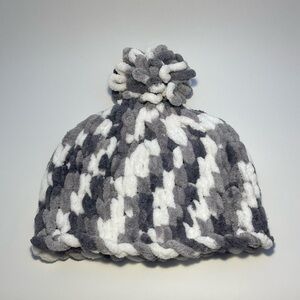 Handmade Women’s/Junior’s Winter Hat With Loopy Pom-Pom - Gray & White