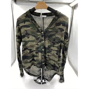 This Socialite cardigan is a must-have for any stylish woman. The tight-knit pattern is perfect for any casual occasion, and the V-neckline adds a touch of elegance to the design. The long sleeves are perfect for cooler weather, and the button accents provide a unique touch to the sweater. The multicolor camo design is both fun and playful, making it the perfect addition to any wardrobe. This sweater is lightweight and can be worn in any season, making it a versatile piece that can be dressed up or down.