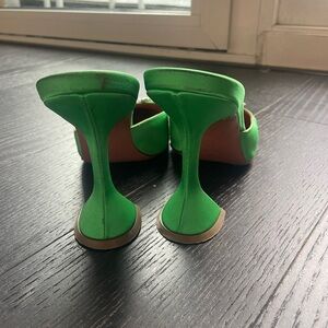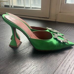 Amina Muaddi Begum Green “Frog” Satin Martini Heels 95mm Sz 38.5