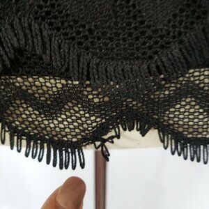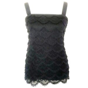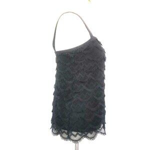 Ann Taylor Top Black S eyelash Fringe Lace Scalloped Crochet Tiered Sleeveless