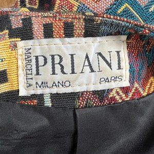 "Stunning vintage oversized bohemian western woven blazer jacket by Marcella Priani Milano Paris. Very high-quality piece perfect for this fall & winter. Looks great with jeans & a graphic tee, over a simple dress, or paired with a turtleneck sweater and some high-waisted trousers. Guaranteed to get you many compliments whenever you wear this piece! A gorgeous multicolor muted pallet consisting of black, sky blue, cobalt, forest green, red, peachy pink, orange, yellow, tan, chocolate brown and off-white woven knit. Made in Canada! Very high-quality cotton blend composition. Excellent pre-owned vintage condition. Very minor wear at all Vintage size 12 but can fit a modern size 14, 12, 10, 8, 6, 4, 2, or 0 depending on how oversized or fitted you prefer it."