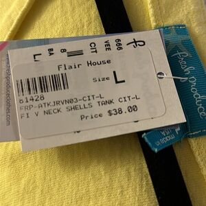 Fire Island , Fresh Produce ,New , never worn , Yellow,cotton tank top . VNeck ,Women’s Large .