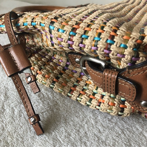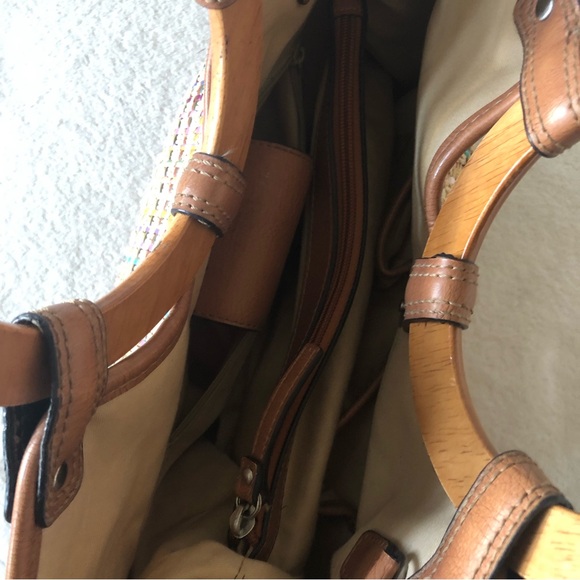 Fossil wood handle weave handbag purse satchel
