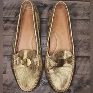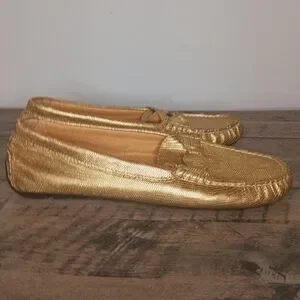 Lauren Ralph Lauren Leather Carley Gold Driving Moccasins NWOT/B