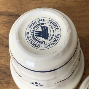 Add a touch of rustic charm to your home decor with this set of two Longaberger Pottery Woven Traditions Blue Votive Cups.