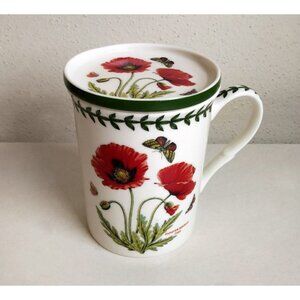 2pc Porcelain Portmeirion Botanic Garden Red Poppy Mug & Coaster Set