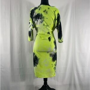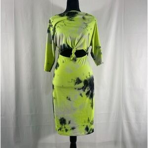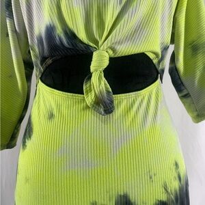 Tie dye maxi dress black, lime,neon yellow, cut out front tie, Mid sleeve,Large